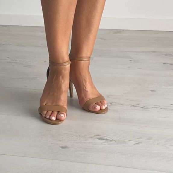 MIA CARMEL karmelowe sandały na szpilce z naturalnej skóry